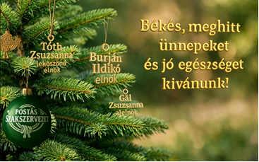 A karácsony az összetartozás, a megnyugvás és az újrakezdés ideje. Kívánjuk, hogy az ünnepek hozzanak békét, feltöltődést és örömteli pillanatokat minden postás család életébe. Az új esztendőben pedig kívánunk jó egészséget, erőt és közös sikereket mindannyiunk számára.