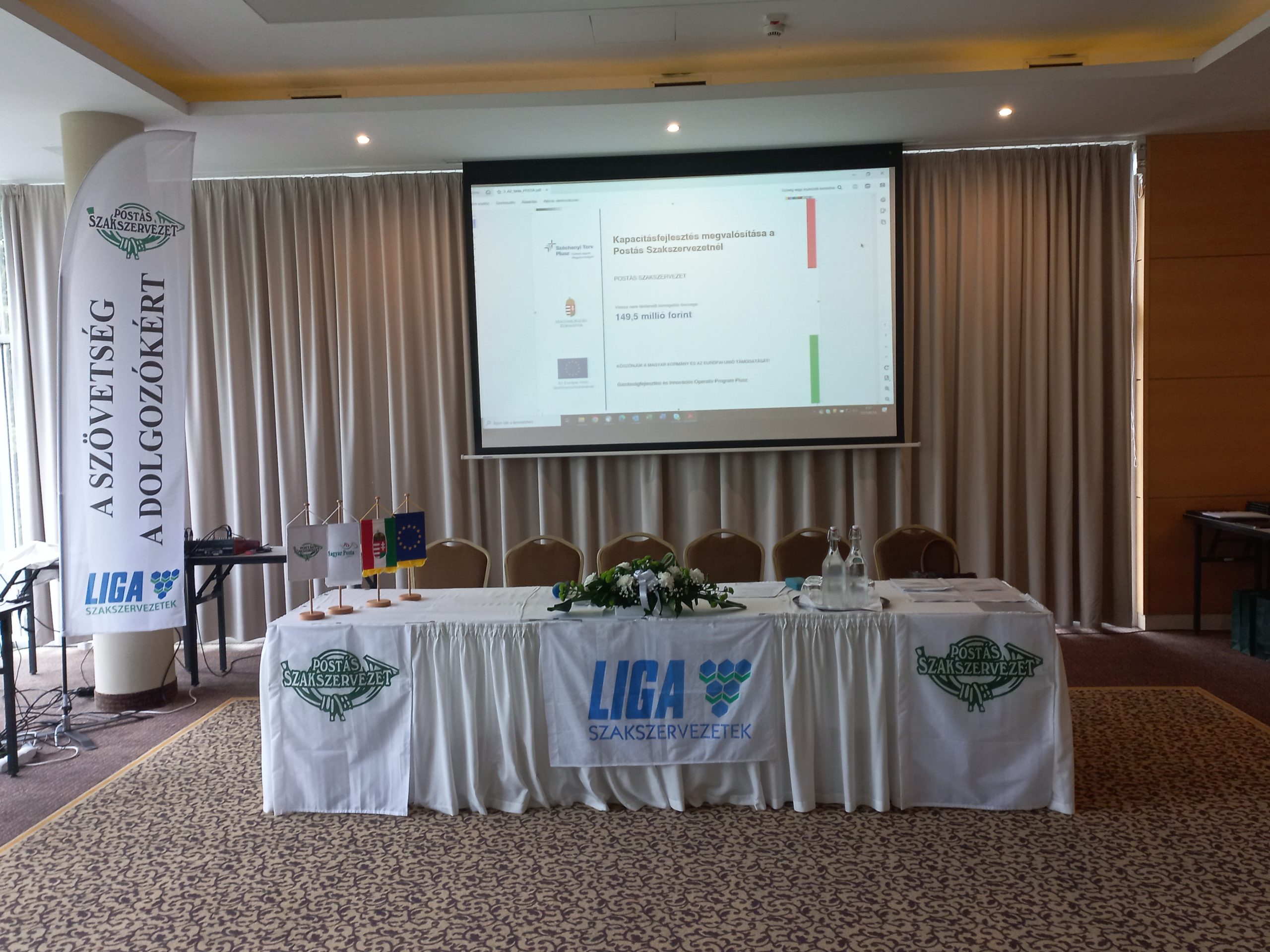 A Postás Szakszervezet 149,5 millió forint vissza nem térítendő európai uniós támogatásban részesült a GINOP_PLUSZ-3.2.3-24-2024-00052-es azonosítószámú „Kapacitásfejlesztés megvalósítása a Postás Szakszervezetnél” elnevezésű projektjéhez. A fejlesztés a Széchenyi Terv Plusz keretén a Magyar Állam támogatásával, az Európai Unió 100%-os társfinanszírozásával valósul meg. A projekt keretében nem képzési célú rendezvényként összesen 2 alkalommal kerülnek megrendezésre küldöttgyűlések. A szakszervezet meghívása a fentiek közül a sorban az első eseményre vonatkozott, mely az alábbi programpontok szerint teljesült.